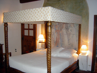 泊まった12号室〜天蓋つきベッド(ヒロのは別)と壁画 |