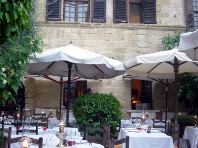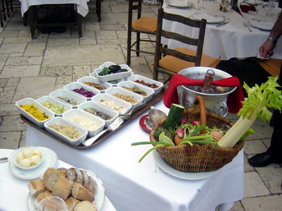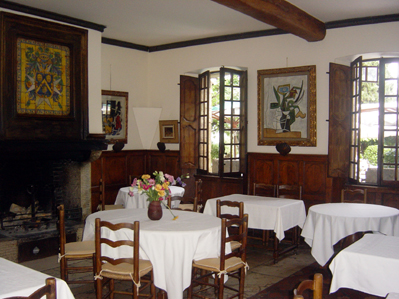 食事は・・・。かつてピカソが泊まっていたころの面影をそのまま残してあるのと同じで、料理も、多分50年前にタイムスリップしたかのような、プロヴァンス風の古典的な(?)料理です。雑誌などで紹介された有名なオードブルは、それだけでおなかがいっぱいになってしまいます。付け合せの新鮮野菜がことのほか美味しく感じました。 |
