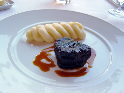 | レストランの中庭のテーブル(ロアジス=オアシスです。) | 仔牛のステーキ、フォアグラのせ | ||||||||||||||