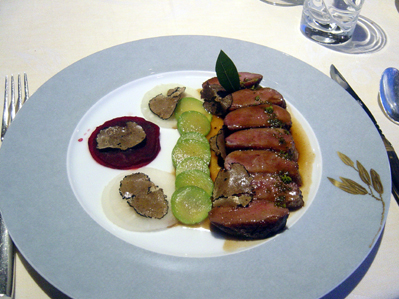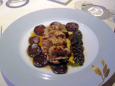 | ママの前菜、フォアグラのソテー(冷製より美味しいとか?) | パパのメインは今日は珍しく肉料理、鴨です。 | ||||||||||||||