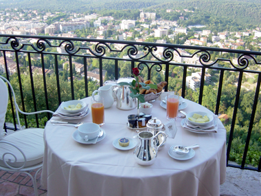 | ☆つきレストランのテラス席 | レストランのテラスから、ヴァンスの旧市街を望む | ||