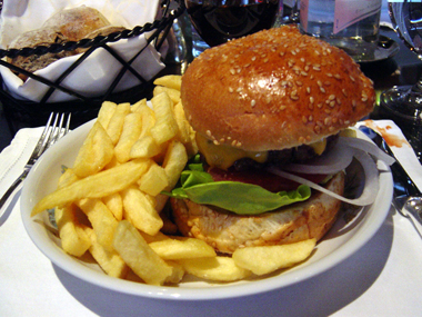 | キッズ・メニュー、チーズバーガー(ミニサイズ) | パパのデザートを快くチーズに変更してくれました。 | ||